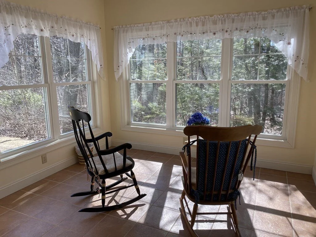 Come and see this well maintained 'Cottage Style' unit in one of the area's premier 55+complexes!! An open concept kitchen, dining, living area. Laminate floors throughout the lower level, and Corian countertops in this bright and spacious kitchen area. A beautiful sun-filled sunroom to enjoy during 3 seasons. An attached garage makes for easy entry with all your packages during stormy days. There are more updates including new gas powered fireplace, electric range, Central AC, dishwasher, and washer and dryer. This unit is placed close to conservation land and has a feel of privacy., Feel free to use the billiard room, the Beachcomber's Cafe, the Carousel Game room with a library, the Fitness Center, or the Beach Road Theatre at the Villa. Easy access to the nearby beach, commuter routes, shopping, mountain areas, airports, and much more.